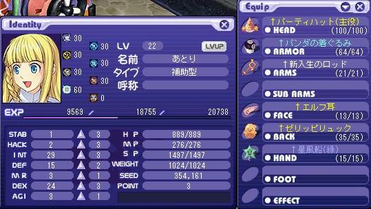 後に試練1が狩り場になるので多少DEFに振っておくww
