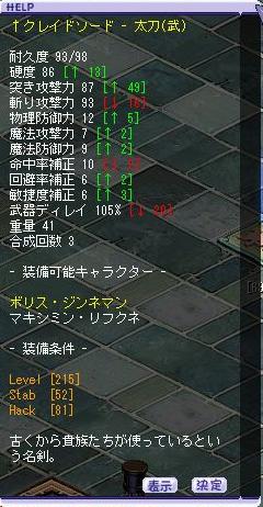 ある日露店にて215太刀が羽毛50枚で売られていたが